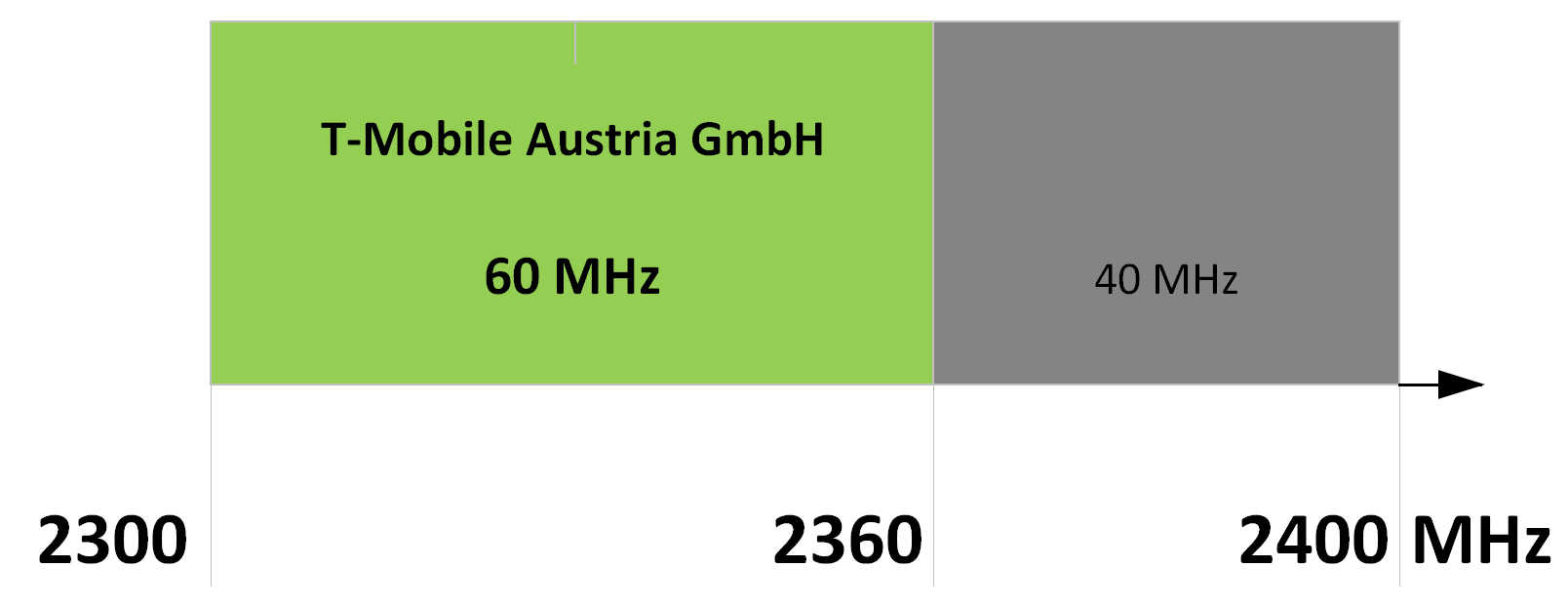 Das Band umfasst den Frequenzbereich 2300 - 2400 MHz.Der Teilbereich 2300 - 2360 MHz wird im Vergabeverfahren F 2/24 erstmals vergeben: