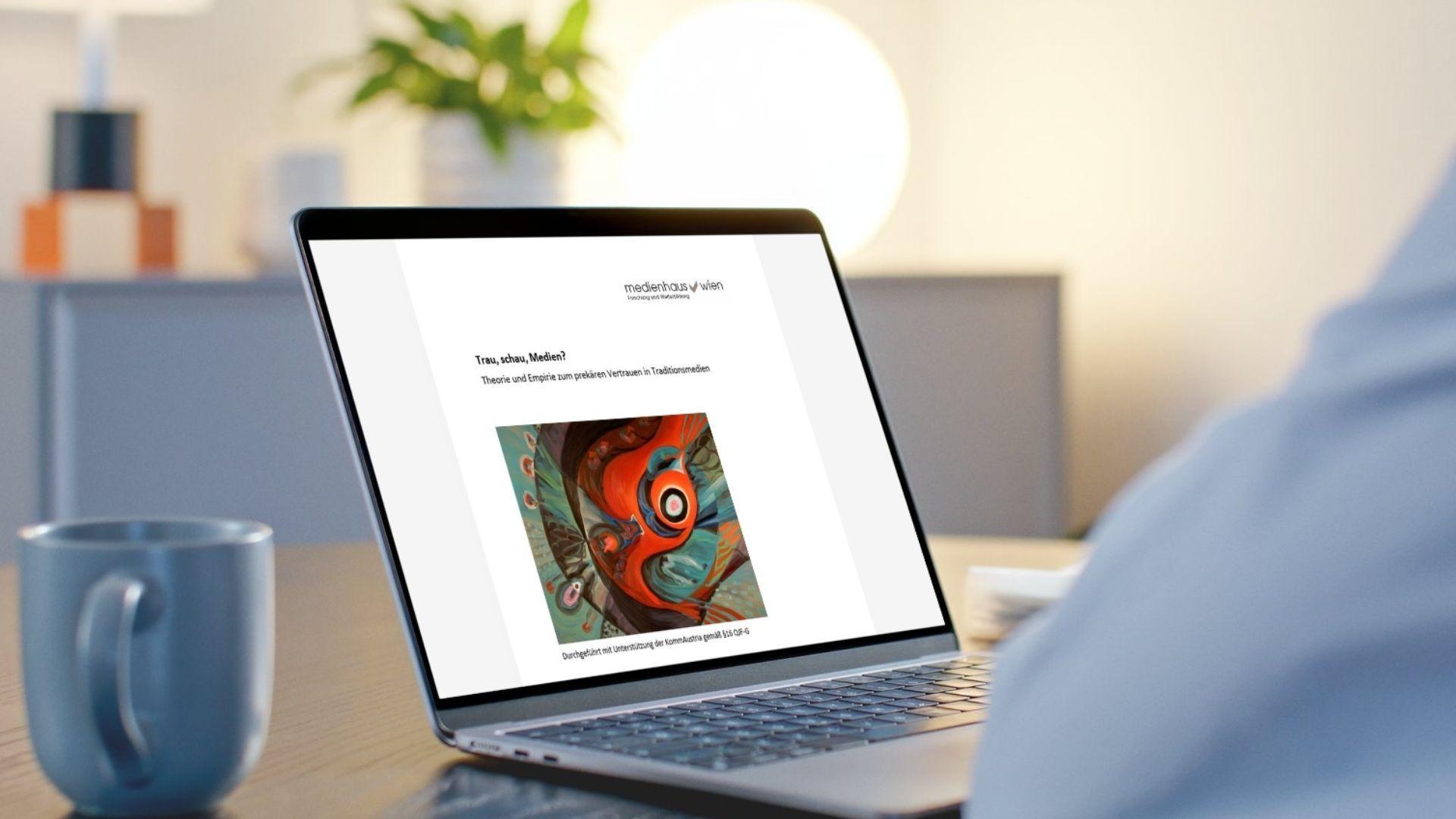 Eine Person sitzt vor einem Notebook auf dem die geförderte Studie ersichtlich ist
